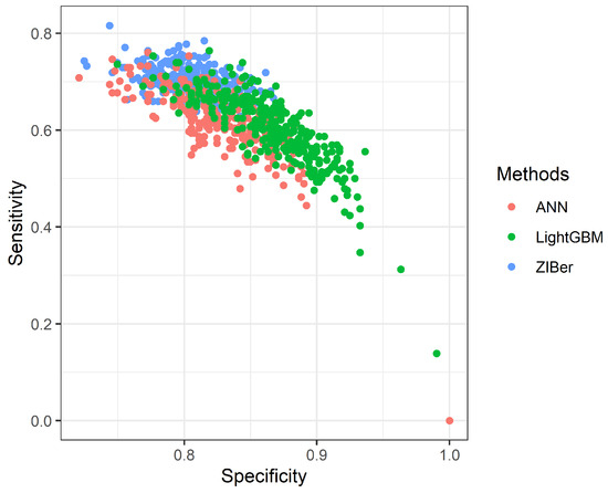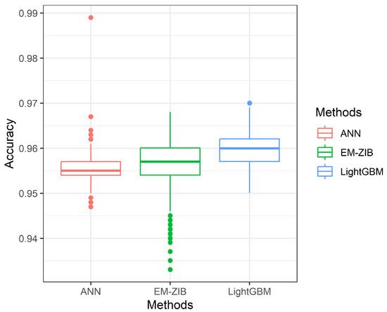 Section 4, Monte Carlo simulations were conducted to compare the classification rate of the ZIBer model, LighGBM, and ANN methods in three measures. The design of Monte Carlo simulations and their implementation are studied in this section. Some concluding remarks are given in