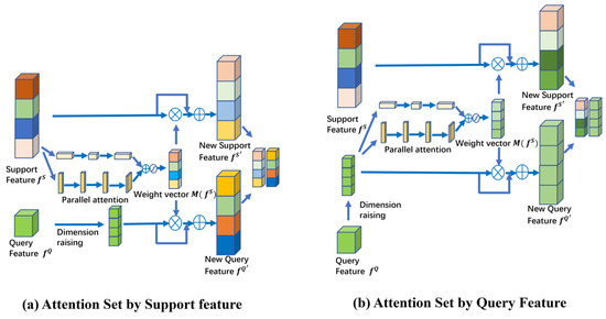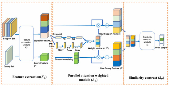 There are two primary approaches to utilizing attentional networks in the aforementioned studies: one is to incorporate an attentional mechanism in the feature extraction module, and the other is to introduce an attentional mechanism after the feature module. While both approaches enable the network to obtain better features and improve their representativeness, they do not enhance the feature comparison between the support set and the query set, which is required in metric networks. Therefore, in this paper, a special attention-weighted structure is utilized to improve the contrast between the support set and the query set by using the attention mechanism as weights and weighting it onto the support set and the query set, respectively, to obtain better classification results.