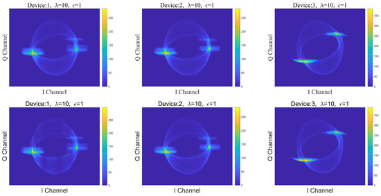 In general, DCTF can extract I/Q channel deviations, non-linear variations, etc., and does not require any synchronization information. Its aggregation points reflect the statistical mean of , and the distribution reflects the variance caused by noise and random wireless channels [33].