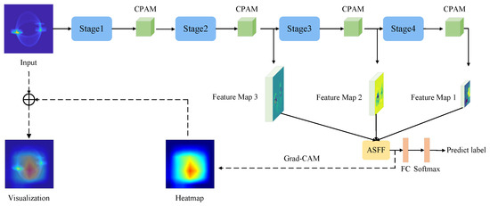 An overview of the proposed method for fine-grained RF fingerprint recognition is shown in Figure 2. It consists of four modules: namely, the backbone network, the channel and positional attention module (CPAM), the adaptive spatial feature fusion module (ASFFM), and the classifier.