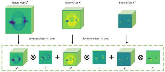 Let , , and denote the resized feature maps with the same size. Then, the three feature maps at different scales are integrated as follows: