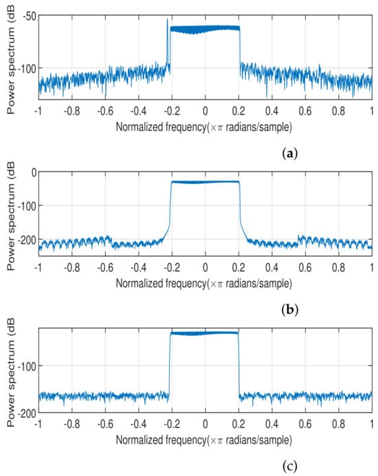 where and are the Fourier transform of the received preamble after time synchronization and the lth standard preamble, respectively, while is the inverse fast Fourier transform. Examples of the cross-correlation results are presented in Figure 12. When the cross-correlation was computed based on the same preamble sequence, several significant peaks could be observed, and there was one peak at the beginning. When the cross-correlation was computed using preamble sequences of the same group, the peaks could be observed, but there was no peak at the beginning. When the cross-correlation was computed using preamble sequences from different groups, no peak could be observed.
