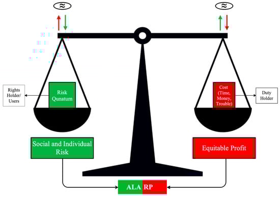 A schematic representation of Lord Asquith’s judgment [43], a case of mining mortal accident in a UK Court judgment (Edwards vs. National Coal Board 1949), is presented in Figure 1. In this judgment, Lord Asquith introduced the term “Quantum of Risk” to emphasise the need for a specific, quantifiable measure of risk. This measurable degree of risk is crucial for making a computation in which the risk is weighed against the sacrifice involved in averting it. The use of “Quantum” underscores the necessity of an objective assessment, ensuring that decisions are made based on concrete evaluations rather than vague perceptions. This approach ensures that risks are managed to achieve the ALARP conditions [44].