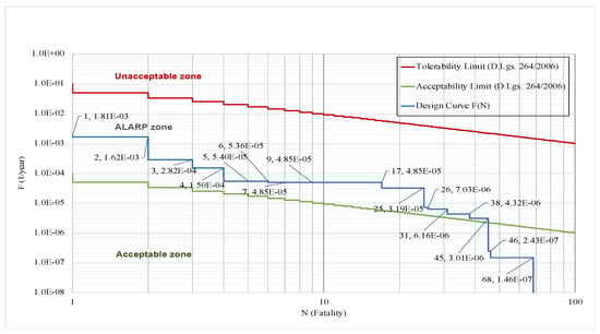 These curves are determined considering the number of people involved in the accident as exposed units and the mortality rate ((N) Fatalities) as a consequence of their exposure. The regulation and management of high engineering systems usually require the use of these diagrams. They can be incorporated into a land-use planning policy or in the risk assessment of future installations.