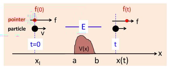 In classical mechanics, a particle always moves along a trajectory , and the amount of time it spends in a region , containing a potential barrier (or a well) (see Figure 1), is a well-defined and useful concept. One way to measure it is to couple the particle to a clock, which runs only while the particle is in the region. This can be achieved by equipping the particle with a magnetic moment, introducing a magnetic field in , and dividing the angle of the precession by the Larmor frequency . A simpler version of the Larmor clock is a pointer with position f and momentum , coupled to the particle while it is in the region. The full Hamiltonian of the system, therefore, is