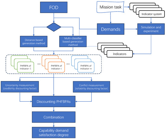 The remainder of the paper is structured as follows. The relevant knowledge of evidence theory, PHFS, and Jousselme distance is introduced in Section 2. In Section 3, the PHFBPA, combination rule and generation methods of PHFBPA, and discounting factors are proposed. Section 4 designs the process to evaluate the capability demand satisfaction degree of SCS. In Section 5, the PHFET is applied to target recognition and an SCS capability demand satisfaction degree evaluation. Section 6 summarizes this paper.