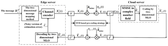 - A decoding error occurs in the cloud server at time instant , and it is defined as follows:where and are the real and imaginary parts of , respectively.