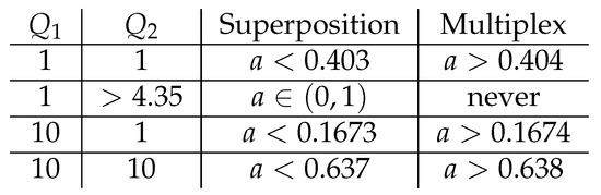 - : This corresponds to the at which is maximized when and . This corresponds to the transition between the multiplex and overflow regions.