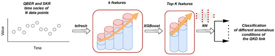 A schematic overview of the entire ML ‘pipeline’ is presented in Figure 1. The parameters inside the XGBoost and NN models are trained with QKD data under different distinct anomalous conditions for the QKD link to classify them. Then, by feeding the model with real-time QBER and SKR data, one can classify the current status of the QKD link accordingly.