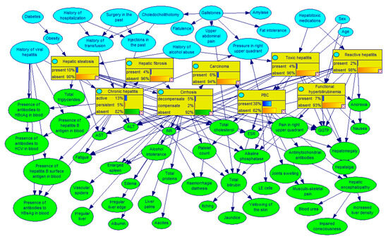 - Oniśko, A. Probabilistic Causal Models in Medicine: Application to Diagnosis of Liver Disorders. Ph.D. Dissertation, Institute of Biocybernetics and Biomedical Engineering Polish Academy of Sciences, Warsaw, Poland, March 2003. [Google Scholar]