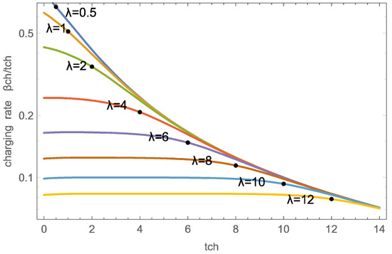 Mathematical analysis of the set of adsorption equations reveals traveling wave solutions, which are characterized by the wave parameter , that is the ratio of capacity parameter and dimensionless flow speed . The same parameter governs the initial boundary value problem describing the charging of the sorbent. Thus, the rather general question for the best charging process reduces to two specific questions, namely, which value of and which charging duration to chose. While large flow speeds, that is small , yield faster charging, they require significantly more pump work; hence, one must consider the trade-off between the charging rate and work requirements.