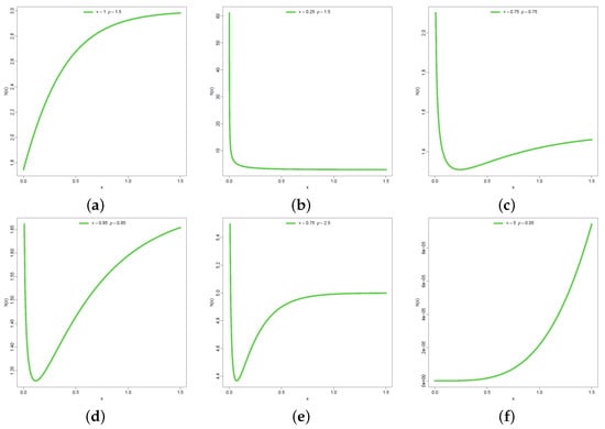Figure 3a–f represent the hazard function with varying behavior or patterns of shape. Some are right-tailed, others increasing, left-tailed, bathtub and bump-like shapes. These are evidence of the versatility of the model in providing fit to lifetime data of various natures.