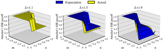 Correspondingly, the attacker’s payoff function is defined by Equation (13).