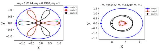 - Li, X.; Liao, S. One family of 13315 stable periodic orbits of non-hierarchical unequal-mass triple systems. Sci. China Phys. Mech. Astron. 2021, 64, 219511. [Google Scholar] [CrossRef]