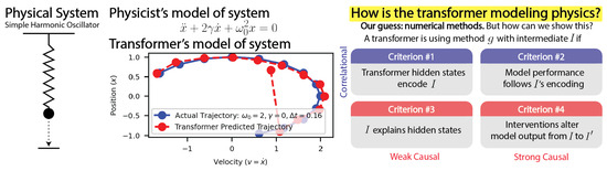 All of these questions developed an understanding of intermediates that built up to the key question: How can we use intermediates to demonstrate that a transformer is actually using a method in its computations? By answering this question for linear regression, we generated four correlational and causal criteria to demonstrate that a transformer is using a method in its computations, which we could then apply to understanding the simple harmonic oscillator, as shown in Figure 1.