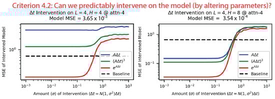 We varied the value of used in the intermediates, and we used the reverse probes from Figure 7 to generate hidden states from these intermediates. We performed this operation on two undamped harmonic oscillator models, which had the best linear multistep/Taylor expansion () and matrix exponential () reverse probes, respectively, and we found that the matrix exponential was consistently most robust for interventions. The baseline was if our model only predicted the mean of the dataset.