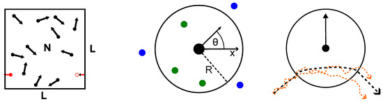 We consider a class of generalized Vicsek-like models [34,35] wherein particles are described by two-dimensional positions () and orientational angles whose dynamics are given by