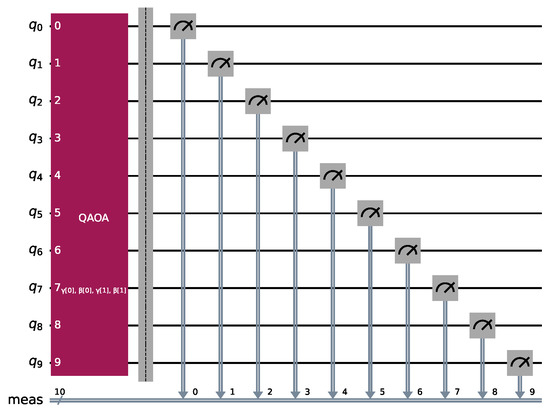 where , , , and . By applying these two types of unitary transformations to the initial state and repeating the process q times, we arrive at the final state , as described in Equation (14). In this paper, q is also referred to as the layer number of the QAOA.