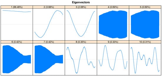 Eigenvectors—SSA. The first 7 components have useful information and the remaining components can be considered noise.