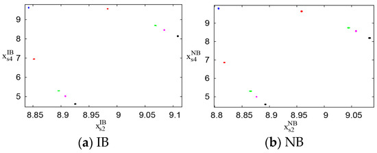Setting in Equation (17), the discrete dynamic system model for the chain-to-chain game of the closed-loop supply chain system of CBEC under the NB scenario can be expressed as follows: