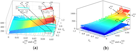 Three-dimensional diagrams of the profits of PM chains and with respect to and under the (a) NB and IB scenarios; (b) NB and ND scenarios.