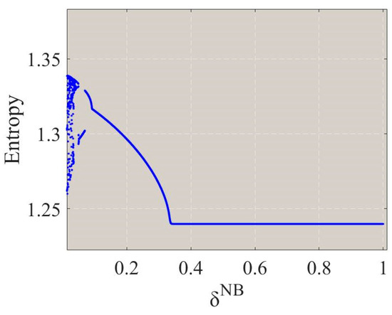 Supply chain competition in the real world is a dynamic process. We suppose that PM chain exhibits bounded rationality and its output decisions are adjusted for the next period based on the current decisions and the corresponding marginal profit; that is, when the marginal profit of PM chain is estimated to be positive (negative) in period , will increase (decrease) the decision value in the following period [6,7]. Let denote the output adjustment speed of under the NB scenario. Then, the adjustment process of the output decisions of under the NB scenario can be expressed as follows: