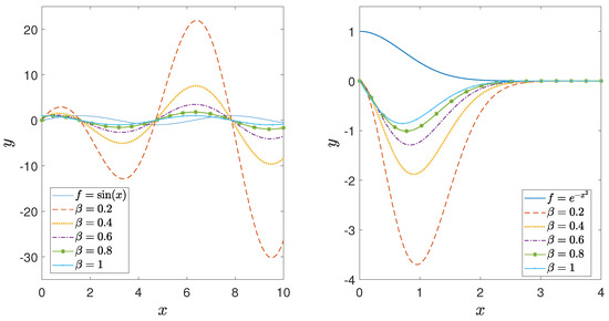 The relationship above simplifies the implementation of this fractal derivative and demonstrates its nature as a local operator. Because of its local nature, fractal derivatives lead to numerically faster and more stable algorithms than other nonlocal fractional-order operators, such as the Caputo derivative. Figure 1 shows how the fractal derivatives of and change with changing fractal derivative order. One of the fundamental properties of derivatives is their linearity, which also holds true for fractal derivatives.
