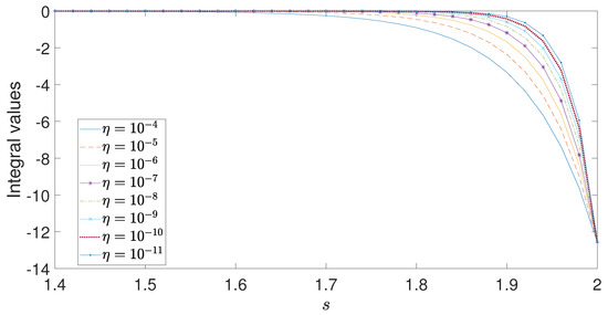 One can then establish the Poisson equation by expanding around the origin and integrating. Integrating the above equation is difficult, and an explicit form in terms of elementary functions may not exist. Thus, one may have to resort to numerical integration to obtain an exact solution. Figure 2 is a plot of the numerically obtained integral in Equation (34) demonstrating its convergence as When and , the integer Poisson equation is retrieved and Equation (34) yields as expected.