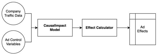 The framework presented in this paper centers on the application of causal inference, which seeks to elucidate the causal relationship between an intervention (event) and its resulting effect. The effect of an intervention is measured by predicting a counterfactual and comparing it with the actual outcome. The counterfactual is a hypothetical scenario or state of affairs that represents what could have happened or what the outcome might have been if a specific event, action, or intervention had not occurred [4,23,24]. The temporal context is segmented into pre- and post-intervention periods. Basically, pre-period information is modeled to predict post-period as the counterfactual. The counterfactual is then compared with the actual to estimate intervention effect. CausalImpact is a causal inference model developed by Google [4]. In this study, Google shows how Bayesian structured time-series models are state-space models governed by the following mathematical equations: