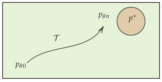 In machine learning practice, it is desirable for a training process to exhibit a robust outcome, regardless of who is running the code. One way to achieve this is by imposing a low variance condition on the statistics of the parameters across the ensemble of all learning trials. This condition asserts that the parameters’ trajectory across the ensemble is confined to a small region . As n grows larger, this region shrinks and becomes associated with the area surrounding the target distribution as depicted in Figure 1. Under this condition, we can express