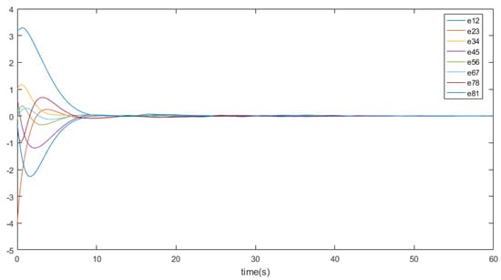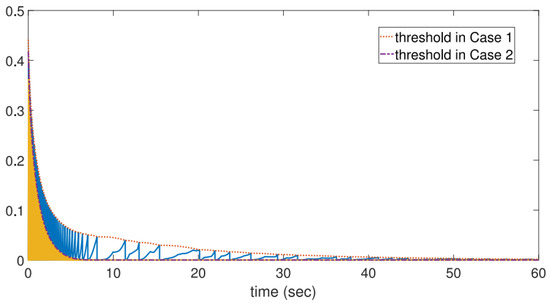 Figure 7 displays the triggering thresholds and the combined measurement errors for Cases 1 and 2. The results demonstrate that all nodes achieve synchronization, thereby achieving consensus.