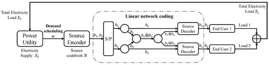 For end user i, there is a concave utility function to describe the gain that end user i obtains from its electricity load x, where . Based on the received partial codeword and the utility function , the end user i adjusts its electricity load in real time. Let denote the real-time electricity load of user i, which is determined by the received partial codeword and the utility function. As a result, the total real-time electricity load of all the users is given by