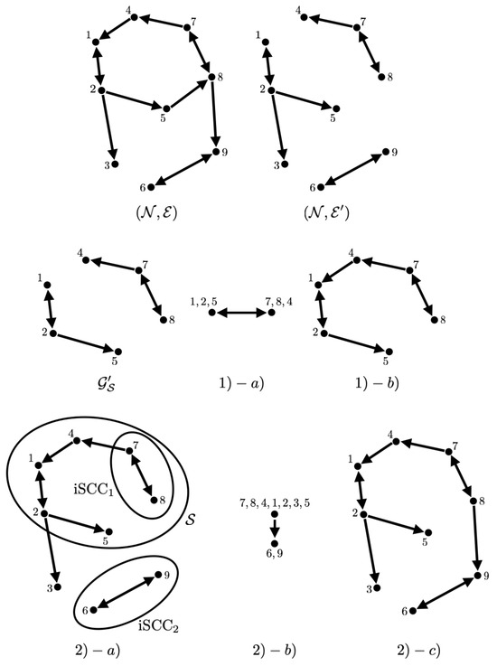 This will complete the proof. By repeating this argument (i.e., by replacing the role of with ), we arrive after finitely many steps at the stage of assuming that Lemma A1 holds for the index set , but is empty; that is, the subgraph only consists of iSCCs, so that the assumption holds trivially.