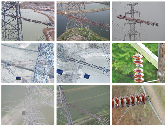 The currently available public datasets, such as the CPLID dataset [20] for insulator detection, are based on images of single-domain insulators and one type of self-exploding insulator defect, which cannot fully reflect the sample insulator characteristics of power lines. The insulator defect detection model trained using this dataset is only applicable to specific weather conditions and defect types and is not suitable for multi-domain insulator defect detection and classification in real-world complex scenarios with multiple defects and various weather conditions. Zhang et al. [17] proposed a dataset for insulator detection in foggy weather conditions. This dataset contains 853 original images and 10,122 augmented images total, which are augmented with random masking, random left and right flips, random up and down flips, etc.
