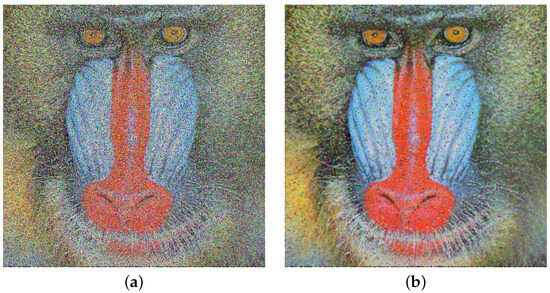 Encrypted images are susceptible to noise, and thus they may appear distorted when decrypted. Therefore, it is advantageous to devise a parameter that quantifies the loss in sharpness [50]. For this, in this paper, the parameter is introduced to assess the degradation of decrypted images. Specifically, Equation (23) defines , with the subscript indicating the basic color under analysis.