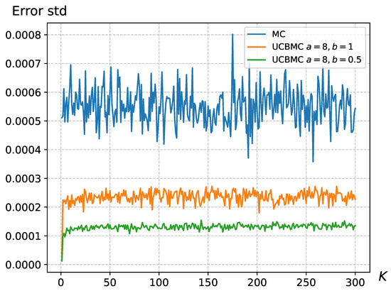 In Section 2.3, where we introduced the formula for UCBMCSampEn2D, it was observed that the parameters a and b significantly impact the convergence speed and error of the algorithm. Since in (6) reflects the proportion of bias, an unreasonable bias proportion could render the reward function ineffective. We conducted 50 experiments using wallpaper images and computed the standard deviation of the error for the k-th round (), as shown in Figure 6. The results in Figure 6 demonstrate that the effectiveness of UCBMCSampEn2D is influenced by the parameters a and b. Appropriate selection of the values for a and b can reduce the standard deviation of the errors. Based on our experimental tests, we recommend using and . However, adjustments may still be necessary based on the image size and the number of sampling points .