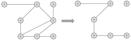 - Local clustering coefficient: The local clustering coefficient is the ratio of the number of actual connections to the number of possible connections between the neighboring nodes of node , which is used to measure the degree of aggregation of a particular node.