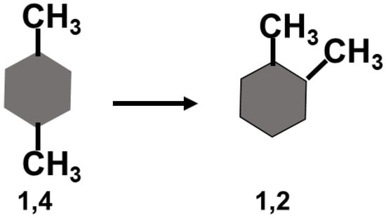 On the right-hand side of Equation (36), we have the solvation Gibbs energies of the two isomers shown in Figure 4. Thus, from these experimental quantities, one can estimate the conditional SII between two methyl groups attached to the backbone of a benzene ring.