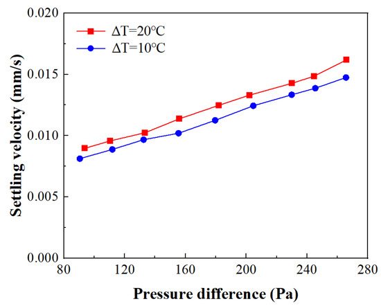 Variation of settling velocity with vertical pressure difference.