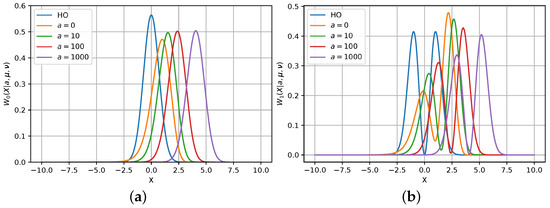 Alternatively, the parameters and can be expressed in the form , , where is a real squeezing parameter and is a rotation angle. Then, the variable X is identical to the position measured in the new reference frame in the phase space with axes and , and, after the scaling, the axes are rotated by an angle . Thus, the tomogram implies the pdf of the random position X measured in the new (scaled and rotated) reference frame in the phase space [37].