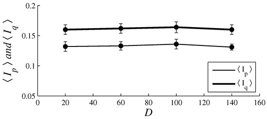The plots of (thin line) and (thick line) in function of D. The parameter values are the same as those used in Figure 3.