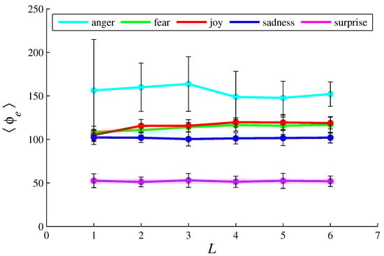 The plots of in function of L, for {anger, fear, joy, sadness, surprise}. The parameter values are the same as those used in Figure 7.