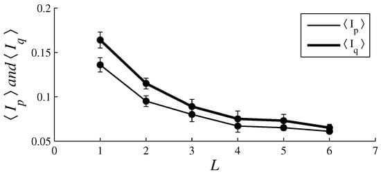 The plots of (thin line) and (thick line) in function of L. The parameter values are the same as those used in Figure 7.