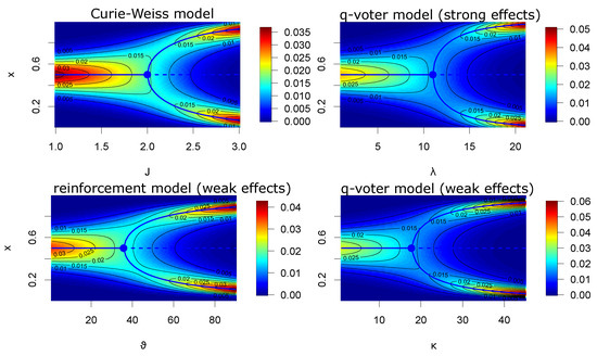 To obtain the behavior of the opinion process under the strong effects limit, we briefly sketch the Kramers Moyal [38] expansion of the model, which is—as usual—truncated at the second order to obtain a Fokker–Planck (or Kolmogorov forward) equation.