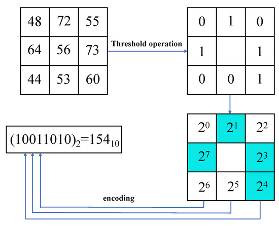 Figure 2. The surrounding 8-bit binary number is read clockwise and then converted into decimal, representing the LBP characteristic value of the current central pixel. The principle remains the same for the circular neighborhood, but in this case, the neighborhood radius and the number of equidistant pixels need to be set.