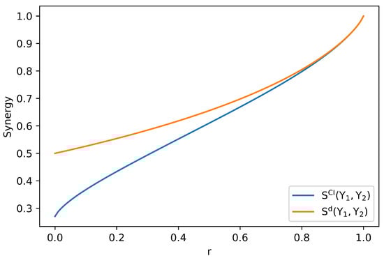 - We saw that the synergy yielded by the measure of James et al. [] is given by . Given its analytical expression, one could start by defining a measure of union information as , possibly tweak it so it satisfies the WB axioms, study its properties, and possibly extend it to the multivariate case.