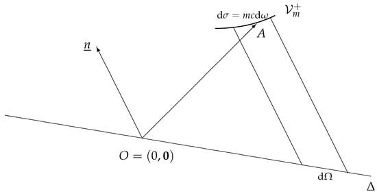 The sample population consists of those particles with world lines cutting the infinitesimal space-like segment orthogonal to the time-like unit vector , as is shown in Figure 2.