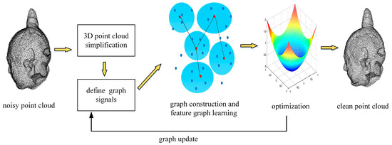 In recent years, several methods have been proposed for denoising point clouds, including the graph feature learning method [18,19,20,21,22,23,24,25,26] and the deep learning method [27,28,29,30,31,32,33].
