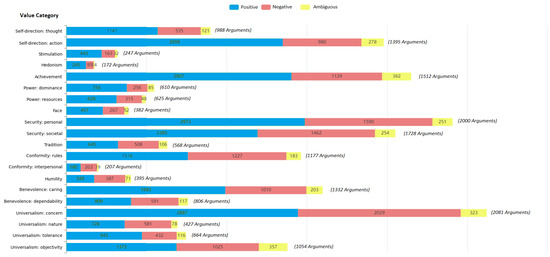- Kiesel, J.; Alshomary, M.; Handke, N.; Cai, X.; Wachsmuth, H.; Stein, B. Identifying the human values behind arguments. In Proceedings of the 60th Annual Meeting of the Association for Computational Linguistics, Dublin, Ireland, 22–27 May 2022; Volume 1: Long Papers. pp. 4459–4471. [Google Scholar]