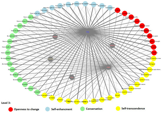 Illustration of the taxonomy of human values and their hierarchical levels (1–4), selected for their relevance in social science research [10]. Level 1 is associated with 54 values, which are classified into the more abstract categories found at levels 2–4.